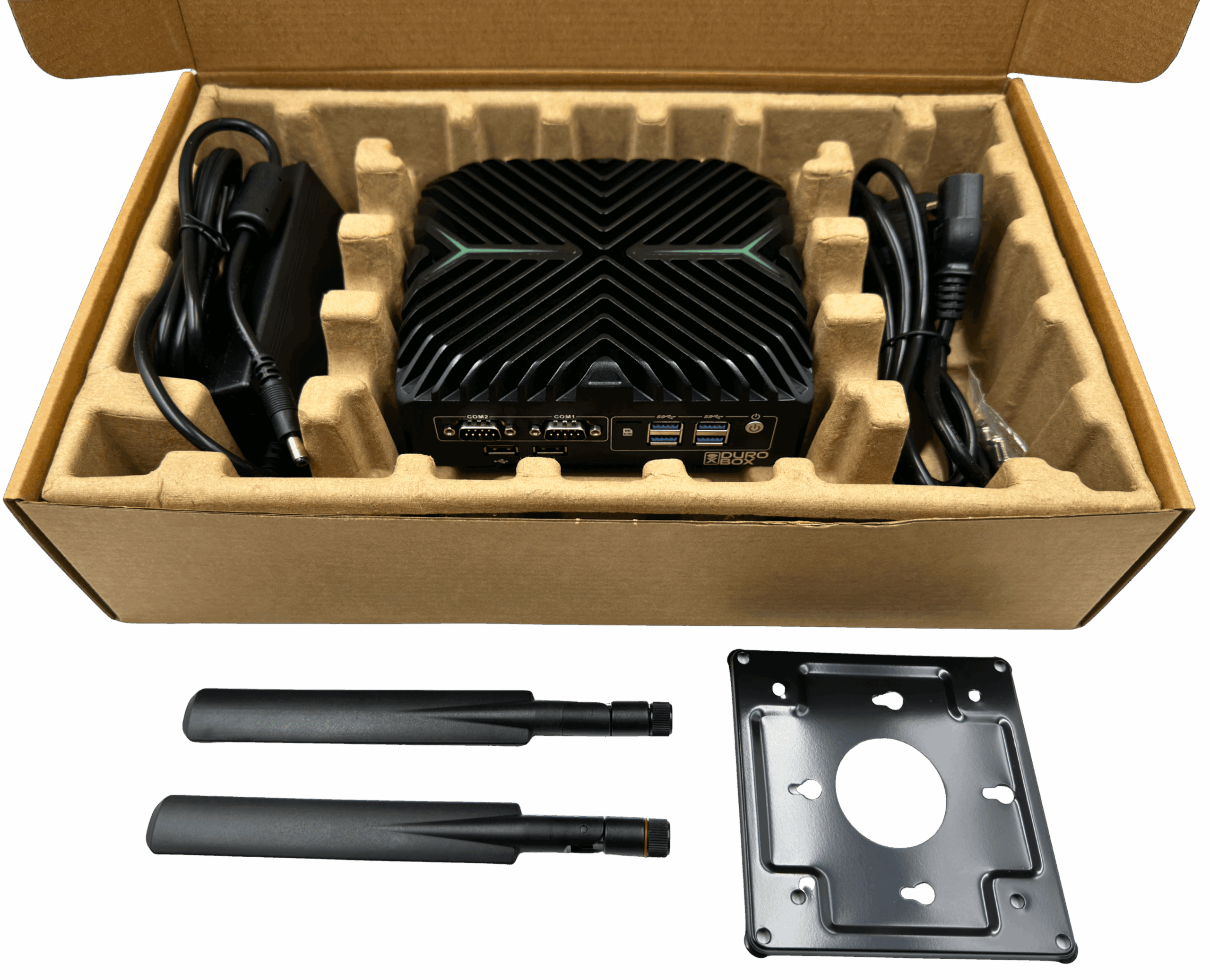 The DuroBox Standard Kit is a complete MOT workstation built around the DuroBox fanless PC. Everything arrives in one delivery – PC, monitor, keyboard, mouse, cables, and power adapters. There is nothing extra to source, licence, or configure.